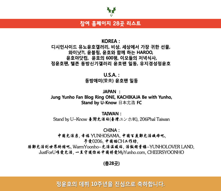 世界中のユノファンサイト、コミュニティは全29箇所が参加しました!