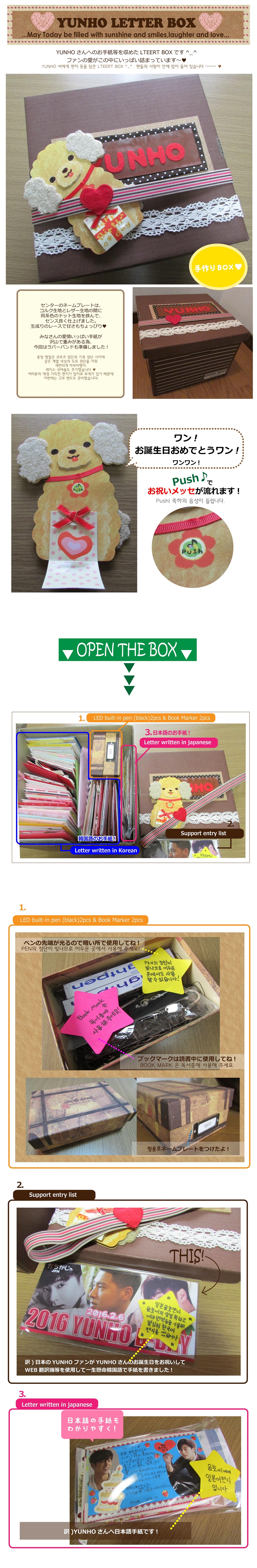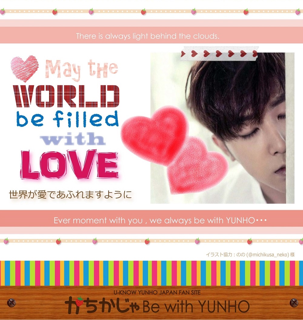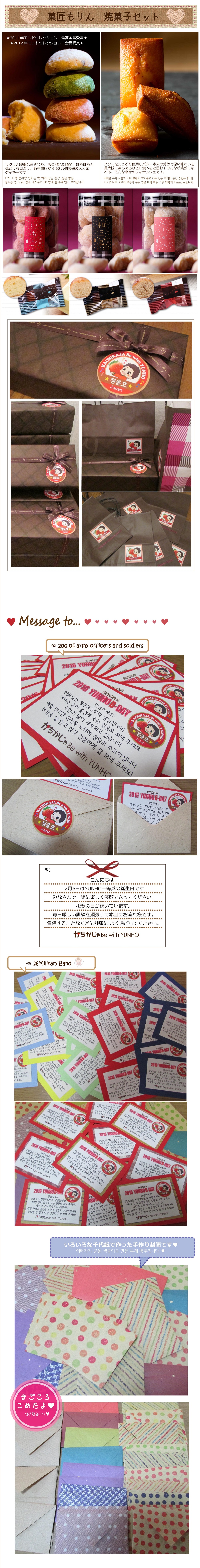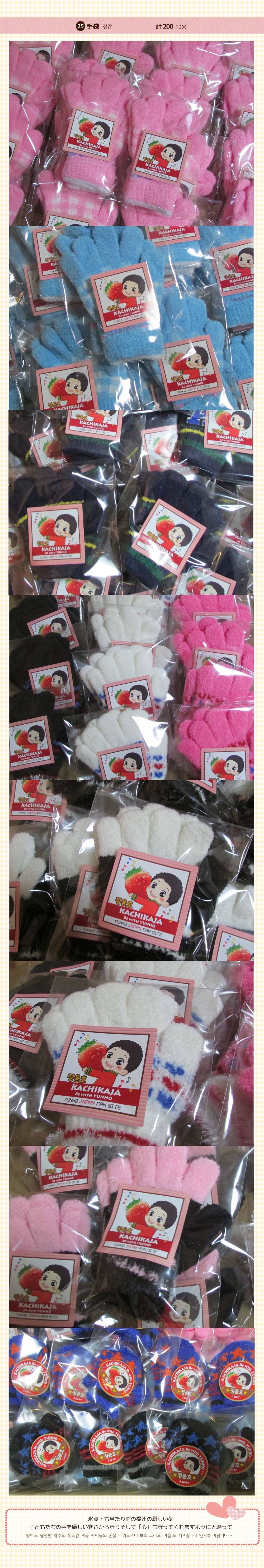 2016.2.27追記ここから ↓↓↓ 3.Donation SUPPORT 楊州市「寄付証書」が未着ですが ご参加くださった皆様をお待たせするのは心苦しいので、その部分は追記するとして先ずご報告させて頂くことにしました。 ![]() ![]() ![]() ![]() ![]() ![]() ![]() ![]() ![]() ![]() かちかじゃの寄付の記事リンクです ★韓国語記事★ 京仁日報⇒ユノユンホ日本ファンクラブの会員の子供の学用品の寄付 第26機械化歩兵師団軍楽隊に服務中の歌手ユノ(ユンホ)の日本ファンたちが 揚州市恵まれない隣人のために学用品を後援してきた。 歌手チョン・ユンホの日本ファンクラブ「KACHIKAJA Be with Yunho」は 15日、郵便でバッグや靴、手袋、色鉛筆など学用品(419万ウォン相当)を 「地域低所得層の子供たちのため届けてほしい」と市の女性保育とドリームスタートチームに送られてきた。 このファンクラブの関係者は、 「ユンホがいつも寄付とボランティア活動を着実に実践しておりファンも分かち合いに関心を持って参加している」とし 「誰に誇示するのではない純粋なファンの温かい心をお届けしたい」と明らかにしたことが分かった。 また、ファンは、今回の分かち合いリレーを継続するなど単純な寄付・寄贈を超え、 心の交流に発展ことを期待するというメッセージを市に伝えた。 市の関係者は、「学用品は、地域内の低所得層の子供たちに伝える予定」とし 「市で軍服務中のユノと美しく貴重な縁が持続なることを期待している」と述べた。 京畿日報⇒ユノユンホ日本ファンクラブの会員の子供の学用品の寄付 Newsis⇒ユノユンホ日ファンクラブ、揚州市に学用品寄託 非常経済⇒ユノユンホ日本ファンクラブ揚州市に学用品一体後援 yonhapnews⇒ユノユンホ日ファンクラブ、揚州市に学用品寄託 obsnews⇒ユノユンホ日ファンクラブ、揚州市に学用品寄託< ★日本語記事★ ⇒YAHOOヘッドラインニュースになりました! 韓流STARS⇒[東方神起ユンホの日本ファンクラブ「KACHIKAJA Be with Yunho」、韓国楊州市に学用品寄付 エンタメコリア⇒東方神起ユンホの日本ファンクラブ 学用品を寄付 yonhapnews⇒[芸能]東方神起ユンホの日本ファンクラブ 学用品を寄付 Kstyle⇒東方神起 ユンホの日本ファンクラブ、学用品を寄付 ★韓国楊州市FB担当の方からユンゲル様へのメッセージ★ かちかじゃの学用品寄付についても触れてくださってます http://gall.dcinside.com/board/view/?id=uknow&no=223373&page=1 …一部抜粋和訳… 先日のユンホの誕生日もそうですし〜 今回の日本のファンの方々の学用品寄付もそうですし〜 私たち楊州はユノユンホのおかげでこのようなあたたかい心を受けていますが それだけの恩返しをして差し上げていないようで胸が痛いです。 イラスト・画像協力してくださったのの様、LuvYH_様 サポートのお手伝いをしてくれた日本のユノペンオン二のみなさん 韓国で全面的にご協力くださった連合WISH様 そして準備を手伝ってくださった韓国ユノペンの皆様 そして かちかじゃのサポートにご理解ご協力くださった参加者の皆様 とても素敵な心あたたまるお誕生日の御祝をすることができました。 本当に本当に心からありがとうございました。 |