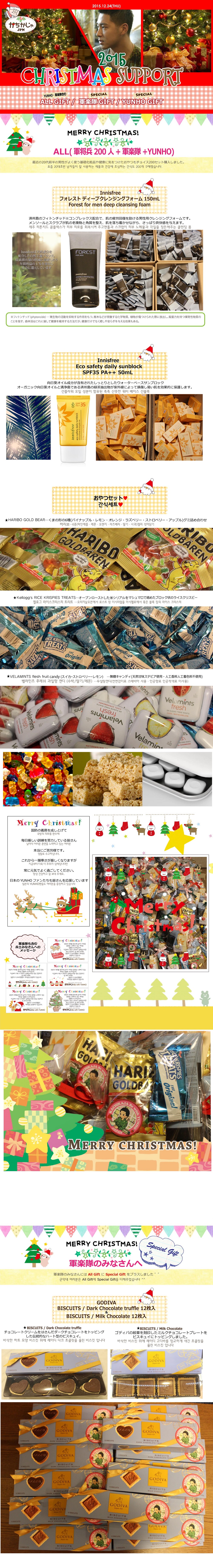 サポートを以下の通り禁止事項がある為、便宜上、2つのレポートに分けて作成してあります★ ★2015 CHRISTMAS SUPPORT★ ★YUNHO26師団図書カフェSUPPORT★ ★注意★ ★2015 CHRISTMAS SUPPORT ⇒ urlのみ移動を許可し 画像の移動は禁止★ ★YUNHO・26師団図書カフェSUPPORT ⇒ 画像移動許可★ ![]() ![]() ![]() ![]() ![]() イラスト協力:のの様 素敵な画像をありがとうございました。 また、かちかじゃのサポートにご理解ご協力くださった参加者の皆様にも心より御礼申し上げます。 |