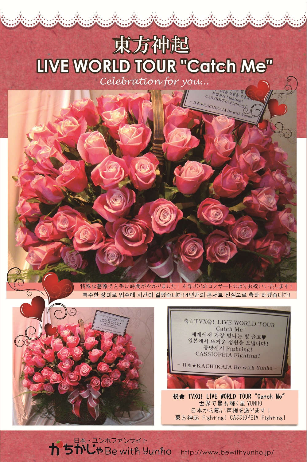 「東方神起ライブワールドツアーCatch Me in SEOUL」開催にあたり 11/14、かちかじゃよりお祝いの花籠を贈りました。 (当日、受領のご連絡を東方神起担当者様より頂いております) 4年ぶりのコンサートの開催は、とても意味のあることだから 特別な薔薇100本のゴージャスでクラシカルな花籠にしました! 約1mサイズとビッグサイズの花籠です^^ --------------------------------------------------------------------------------------------------------------------------- ![]() |