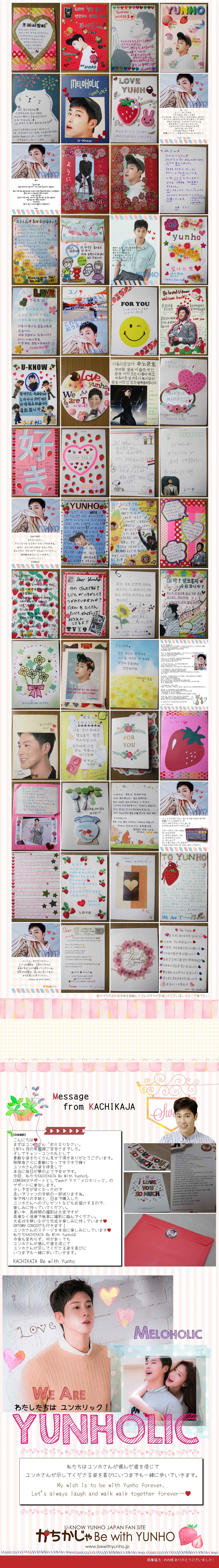 イラスト・画像協力してくださったのの様 サポートのお手伝いをしてくれた日本のユノペンオンニ皆様 韓国準備で手伝ってくださった韓国ユノペンの皆様 ありがとうございました そして改めましてユンホを想いユンホに寄り添い 私たちのサポートにご参加くださった皆様に 感謝いたします お1人1人のあたたかい想いは集まりひとつの大きな愛となって ユンホさんの元へ…♥ ファンの愛は ユンホさんの支えとなり自信となることでしょう 私たちの愛はきっと「ユンホさんの翼」となると確信しています ユンホさんには 決して臆することなく 自身の夢にむかって望む道を歩んでいって欲しい ユンホさんの夢を一緒に見て一緒に叶えたい その為にわたしたちができること… 私たちはユンホさんの翼になりたいですね ユンホさんが夢にむかって もっともっと高く大きく飛翔たけることを 心から願っています わたしたちはいつまでもずっと変わらず共にいる だから安心して、大丈夫だよって わたしたち日本のファンの想いを これからもずっと変わることなく伝え続けていきたいです ユンホさんの翼になる…♥ PS 2018 YUNHOお誕生日サポートは予定より少し遅れて 1/5正午よりオープンします 内容としては例年通りユンホさんの志に添うようユンホさんの故郷である光州への寄付寄贈をまずは考えています かちかじゃらしいあたたかい心のこもった形で進行したいと考えています と同時に 2018年はユンホさんが韓国でカムバックする予定ですから 少しでもユンホさんの後押しになるようにも考え中です インタビューでユンホさんがファンからのお手紙を読んでいると言いましたね! 私も聞いていてとても嬉しく思いましたが その後にも重ねて「ユンホさんはこのお手紙が励みになっている」と伝え聞き 本当に感激しました みなさんの言葉がユンホさんの支えになっています! お誕生日サポートを通してこの機会にぜひメッセージにも挑戦してみてください たくさん方のご理解ご参加をお待ちしています♥ http://yunhotsukamaeta.cart.fc2.com/ かちかじゃBe with Yunho |