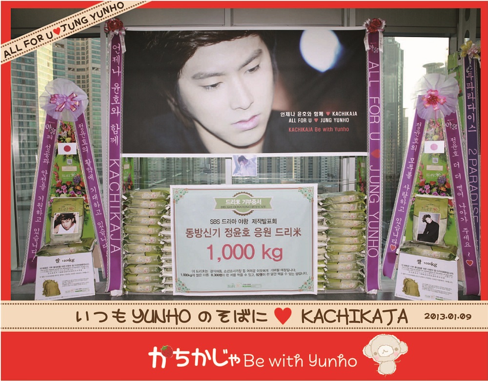 ![]() ミュージカル光化門恋歌の米花輪のお米500kgは 東日本大震災被災地である福島や両親をなくした子どもたちに等に大切に分けて寄付されました。 今回のドラマ野王の米花輪のお米1000kgはYUNHOの故郷・光州の児童養護施設に寄付したいと思っています。 (寄贈先はまだ決定されていませんが希望は出しています) 日本と韓国、両国の未来のある子どもたちの笑顔を かちかじゃは、これからも、 同じ愛で、等しく、応援していきます^__^ ありがとうございました^^ ~★~★~★~★~裏話~★~★~★~★~ 上の応援ボードは、韓国サイドで準備してくださいました! かちかじゃで作成していたものは画像解像度の問題で直前にNGとなった為です>< 急遽ご対応くださった韓国のカシオペアのみなさんに感謝感謝感謝ですT___T ありがとうございました!!!!! 幻のバナーです^^ ![]() ~★~★~★~★~★~★~★~★~★~ |