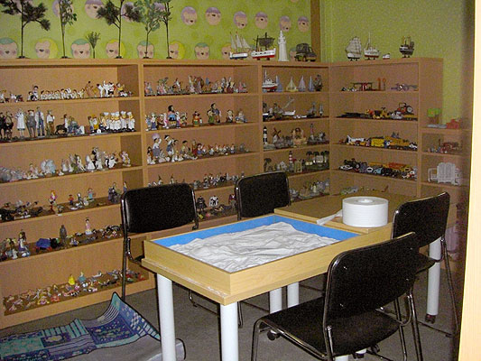 ここはセラピー室。箱庭療法とかが行われています。